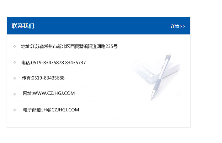 地址:常州市新北區友邦商務大廈1幢16、17層  電話:0519-85101652  傳真:0519-85112595  郵編:213022  網址:www.cz-jiayue_cn.kshldjs.com  郵箱:xiajifengaa@163.com
